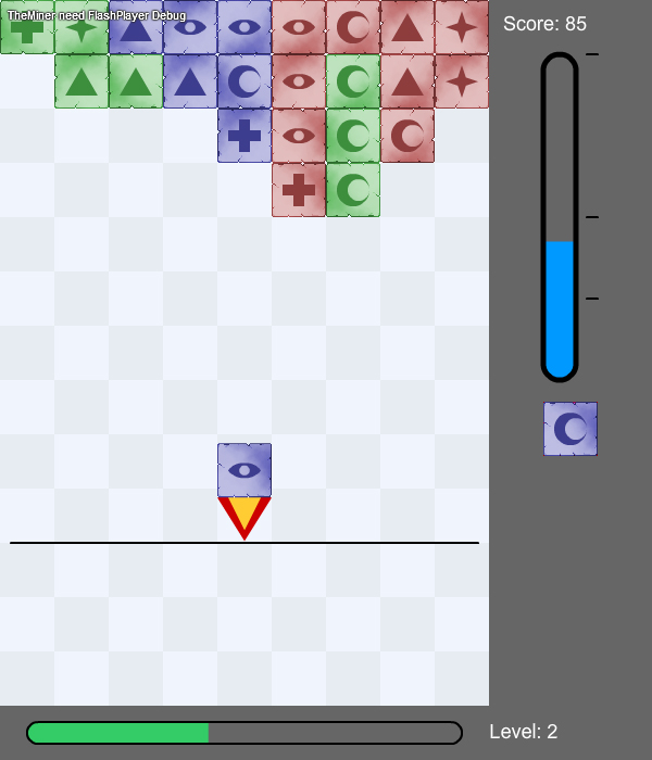 Rocket Blocks is a single player arcade puzzle game in the spirit of Bust-a-Move and Meteos. The player receives a series of randomized blocks which fly upwards from the bottom of the screen. They must navigate these blocks into position in an ever growing wall of blocks at the top of the screen. Points are scored by matching colours and symbols. Achieving a high enough combo will let the player clear blocks away.