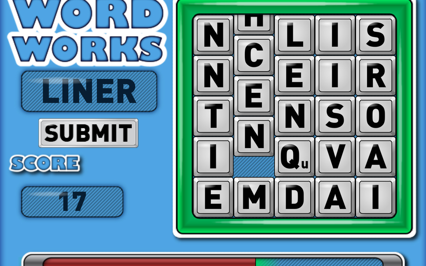 After initially coming up with the concept for WordWorks I got to work on a prototype. Considerable time was spent on optimizing the letter randomization and the dictionary searching. Upon release the game grew surprisingly popular in Vietnam and other Asian countries. Further investigation showed that these players were coming from English tutoring sites. By the time the monetization and stat tracking platform went out of business the game had roughly 350,000 unique sessions over three years.